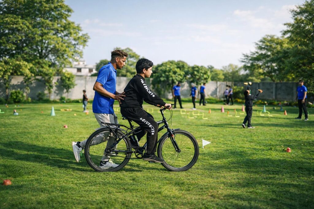 Cycling sessions also encourage children to follow directions, stay focused on tasks, and complete activity goals, which helps strengthen attention and perseverance. As children gain confidence, they experience a strong sense of achievement and independence.