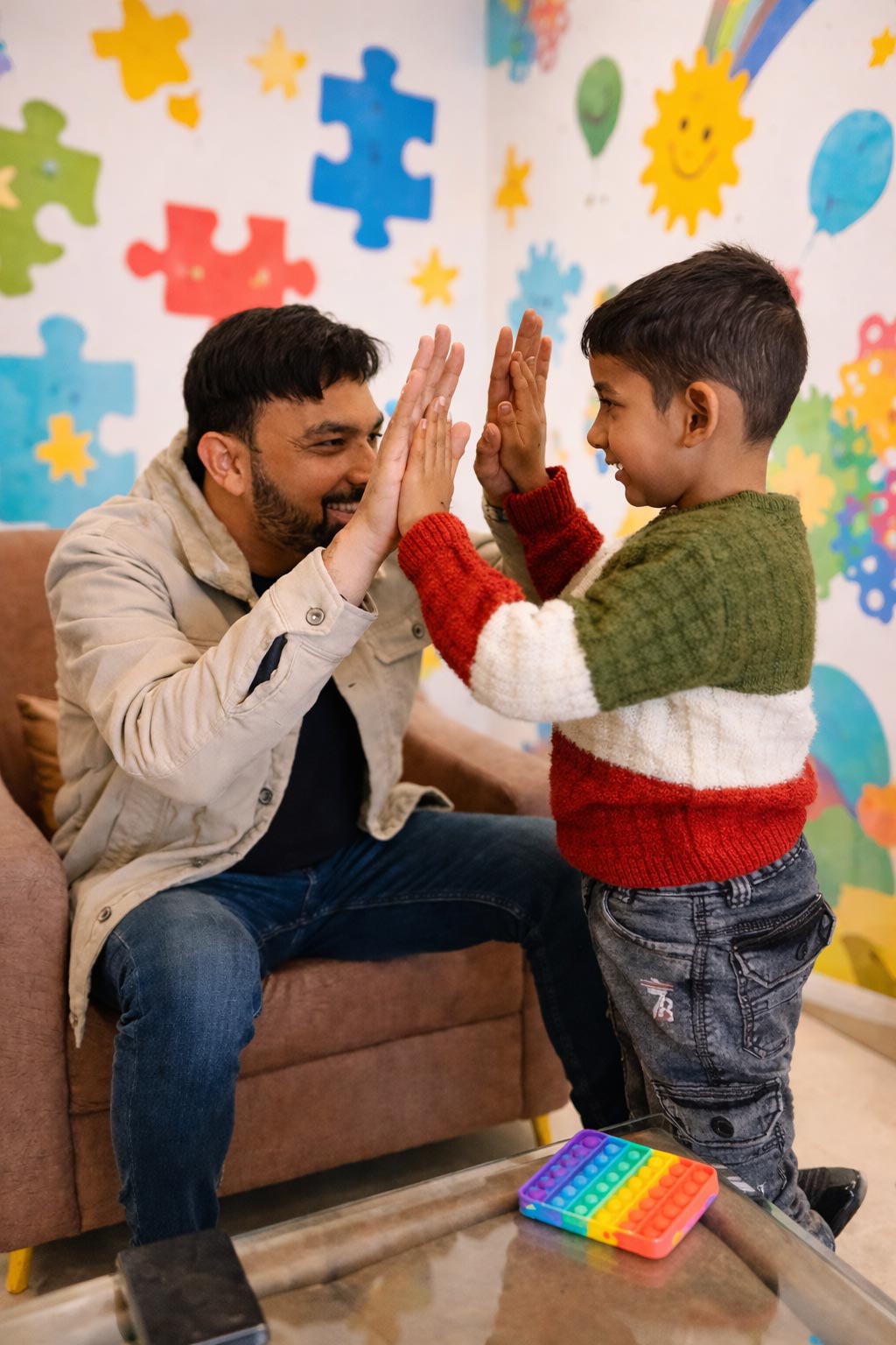 Socialization opportunities are provided through group activities, play sessions, small celebrations, and guided participation in social settings within the center. In these situations, therapists help children practice communication, cooperation, and appropriate social behaviour in a supportive and encouraging environment.